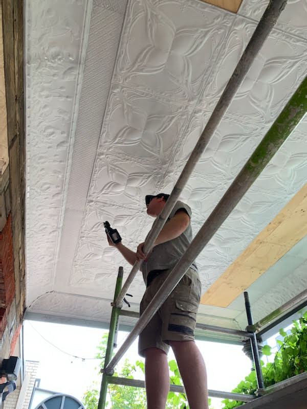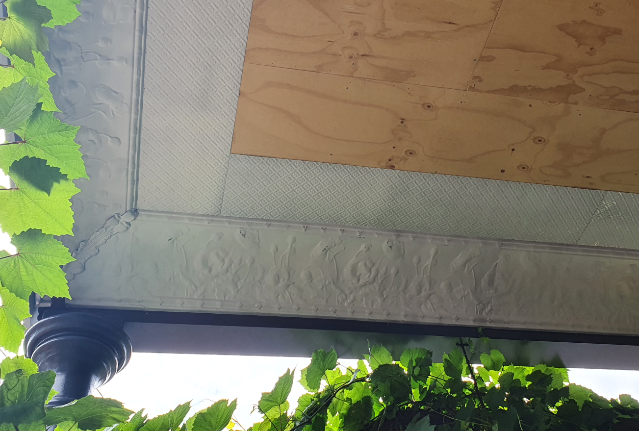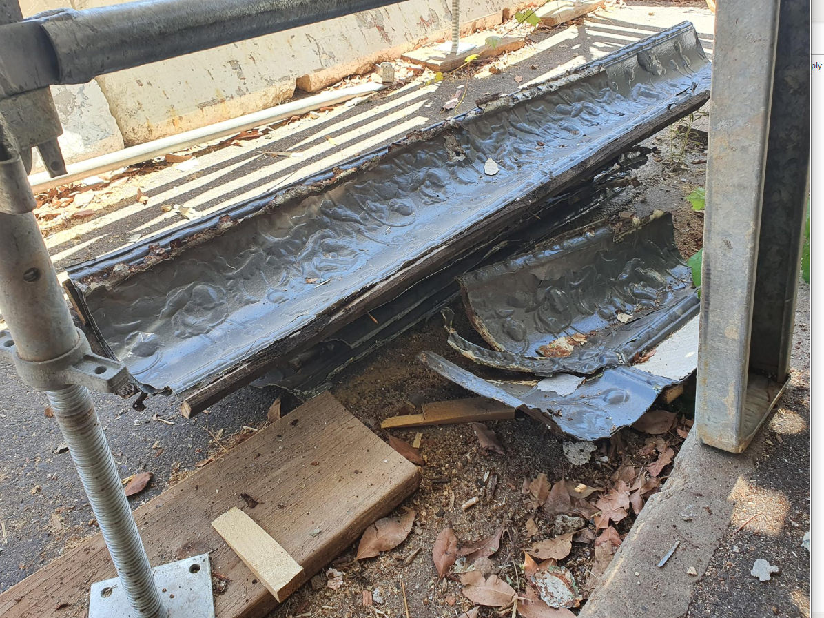 Scope of Contracting WorksSupply and install pressed metal to replace damaged pressed metal like for like. Reproduce new die for cornice and install.