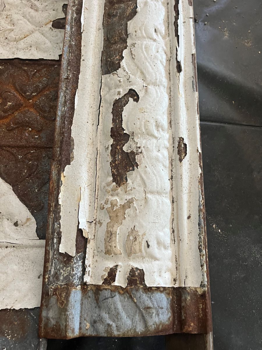 Scope of Contracting WorksReplace & install original rusted pressed metal panels like for like. Create new cornice die like for like to replace original cornice. Create bespoke replica ceiling rose vents to replace original rusted ceiling rose vents.