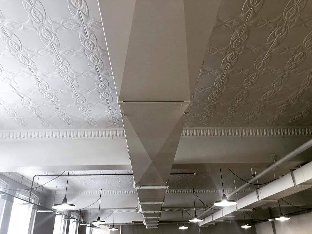 Project DescriptionExtensive repair and restoration works were carried out on Carlton House situated on York and George Streets in Chippendale Sydney, by National Pressed Metal, contracting arm of the Australian Pressed Metal Group. Teams from Sydney Pressed Metal and Adelaide Pressed Metal worked closely with builder Watpac and Heritage Architects to work on the restoration of the pressed metal ceilings in Carlton House. Extensive restoration, removal and replacement works were carried out over multiple levels to restore the original pressed metal where possible by the skilled teams. The extensive project included removal and reinstallation of original pressed metal and installation of new pressed metal 6 bays deep and 3 bays across over multiple levels with a different design on each level. Original pressed metal was removed from the back 4 bays and reinstalled in the front 2 bays with new pressed metal installed in the back 4 bays to allow for alterations to comply with current building codes. Specialised work was carried out to Heritage Architects request when the original goods lift shaft was discovered on each level. To preserve the original area and create a heritage timeline, recycled original pressed metal was used in this area, framed up using the exact same rail pattern and border frieze to indicate where the original goods lift was installed. In areas that required complete replacement Australian Pressed Metal panels were used, manufactured in imperial measurements from superior grade aluminium to the highest specifications fitting in seamlessly with the repairs of the original pressed metal ceilings where the panels were too damaged to restore. Most of the original designs were already in production keeping costs to a minimum. Only two new dies were needed, manufactured by the experienced team to create the magnificent centre ceiling rose now named York Street in homage to one of the streets Carlton House is located on. Other designs used throughout the restoration are; Magnolia, Canning, Dana, Queen of Hearts, Stockholm, St John cornices, beam cladding and Aztec batten.